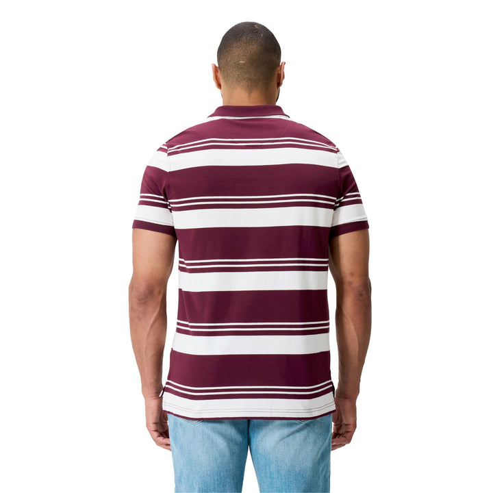 - Standard-fit repeat yarn dye stripe short sleeve polo