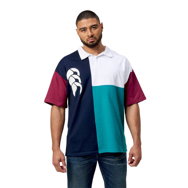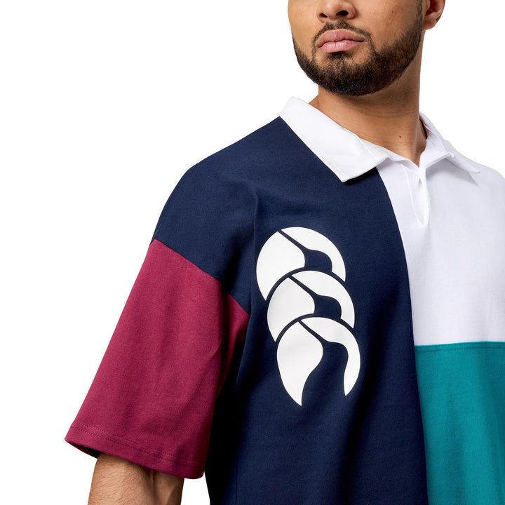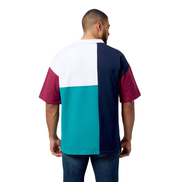 - Relaxed fit cut & sew harlequin block short sleeve rugby