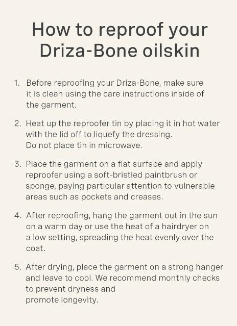Driza-Bone Oilskin Garment Dressing Reproofer is specially formulated to revive and enhance the water-repellent qualities of your oilskin apparel. Designed for outdoor enthusiasts and everyday adventurers, this reproofer effectively replenishes the waxy finish of your garments, ensuring they remain durable and resistant to the elements.