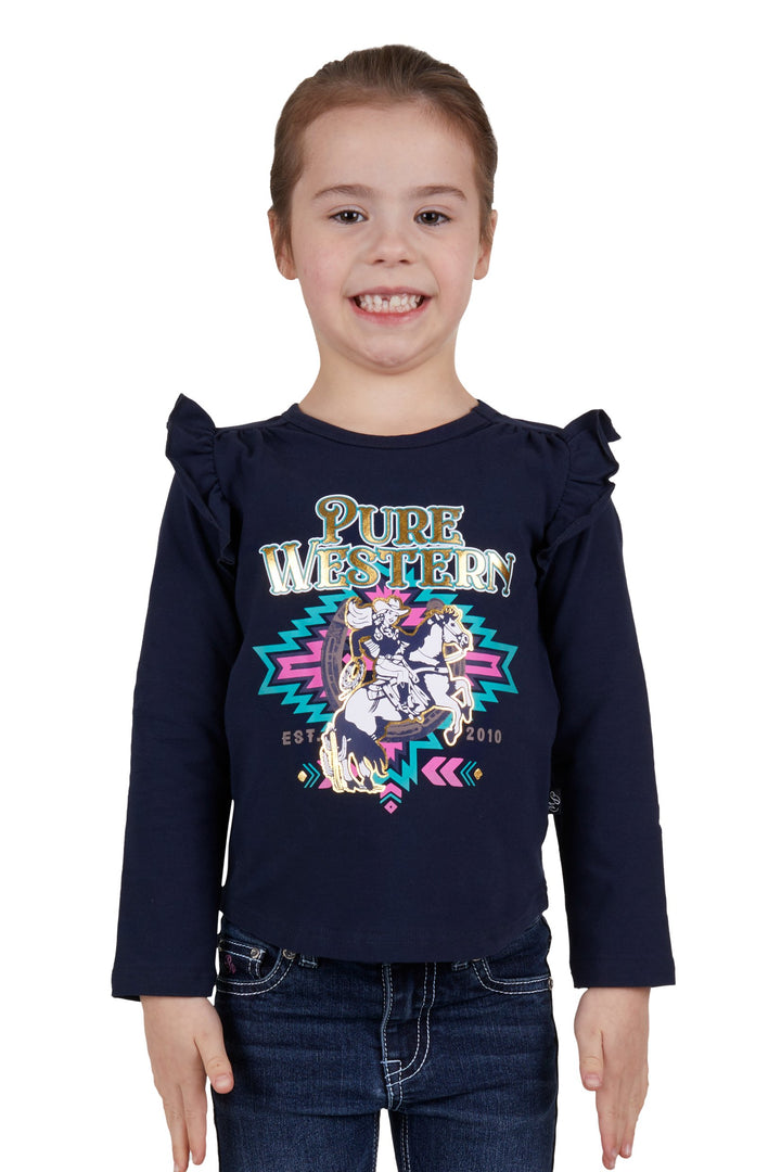 Pure Western - Kids - Emma L/S Frill Tee ~ Navy