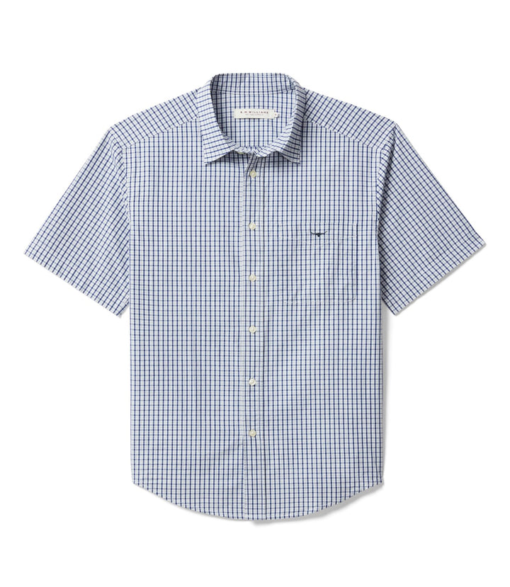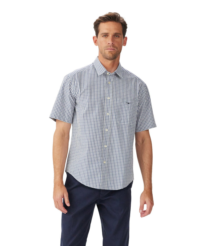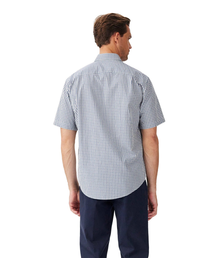 R.M.Williams - Mens - Augusta Poplin S/Sleeve Shirt-White/Blue