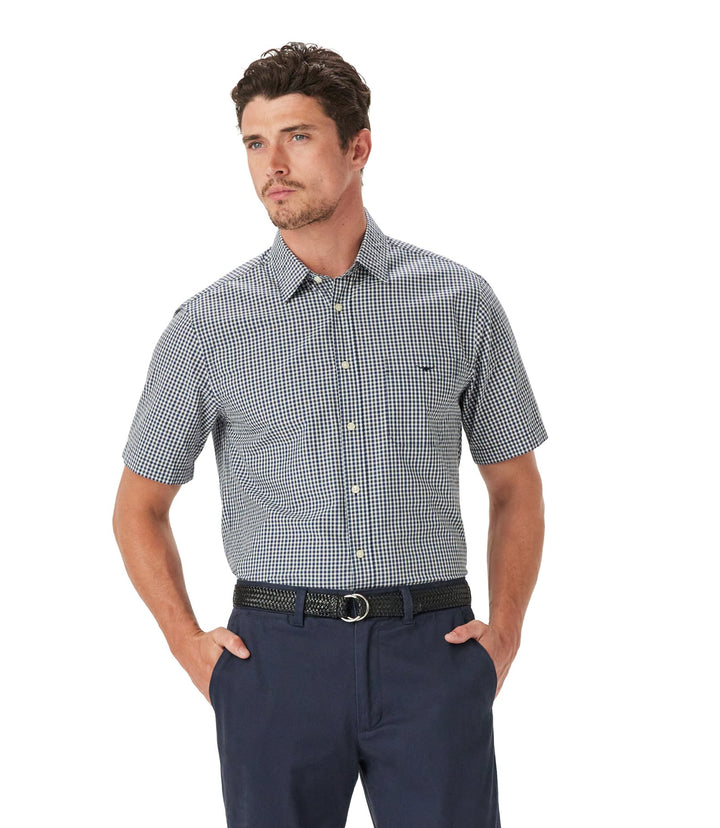 R.M.Williams - Mens - Classic S/S Poplin Check Shirt -Nav/Char
