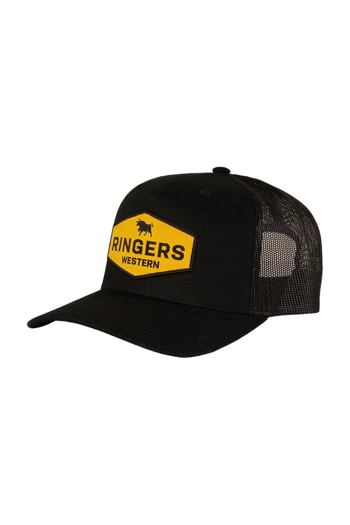Featuring an embroidered logo patch, the Scotty shares our classic trucker cap shape, five panels with black mesh and black snap closure.