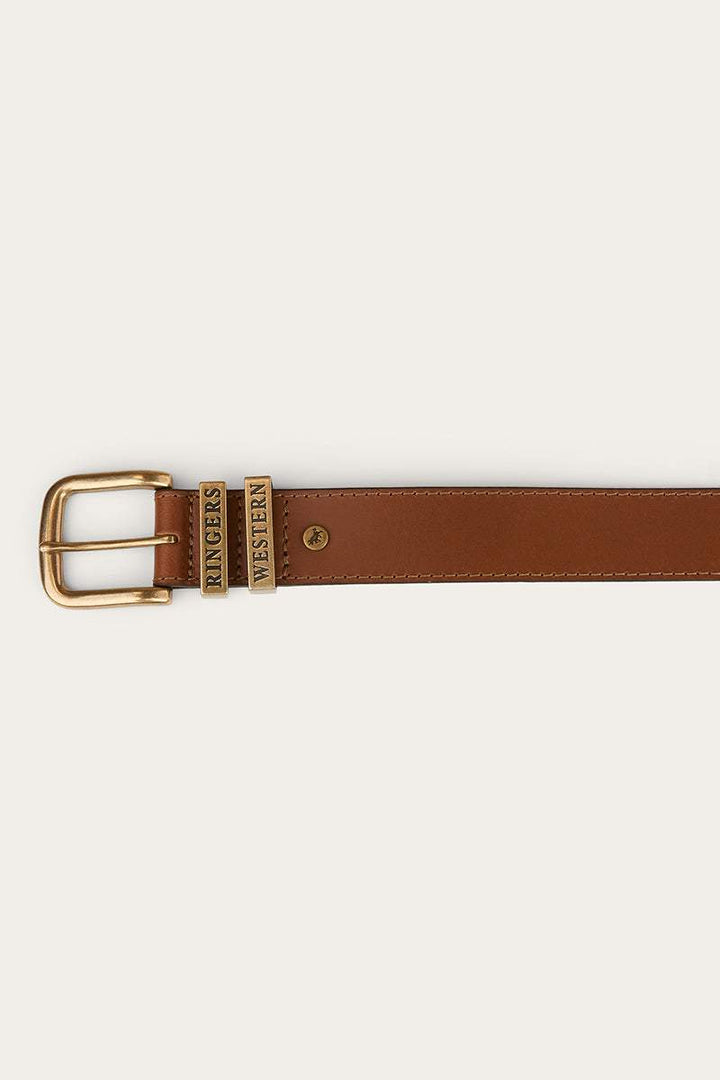 Ringers Western - James Leather Belt - Tawny Brown/Gold