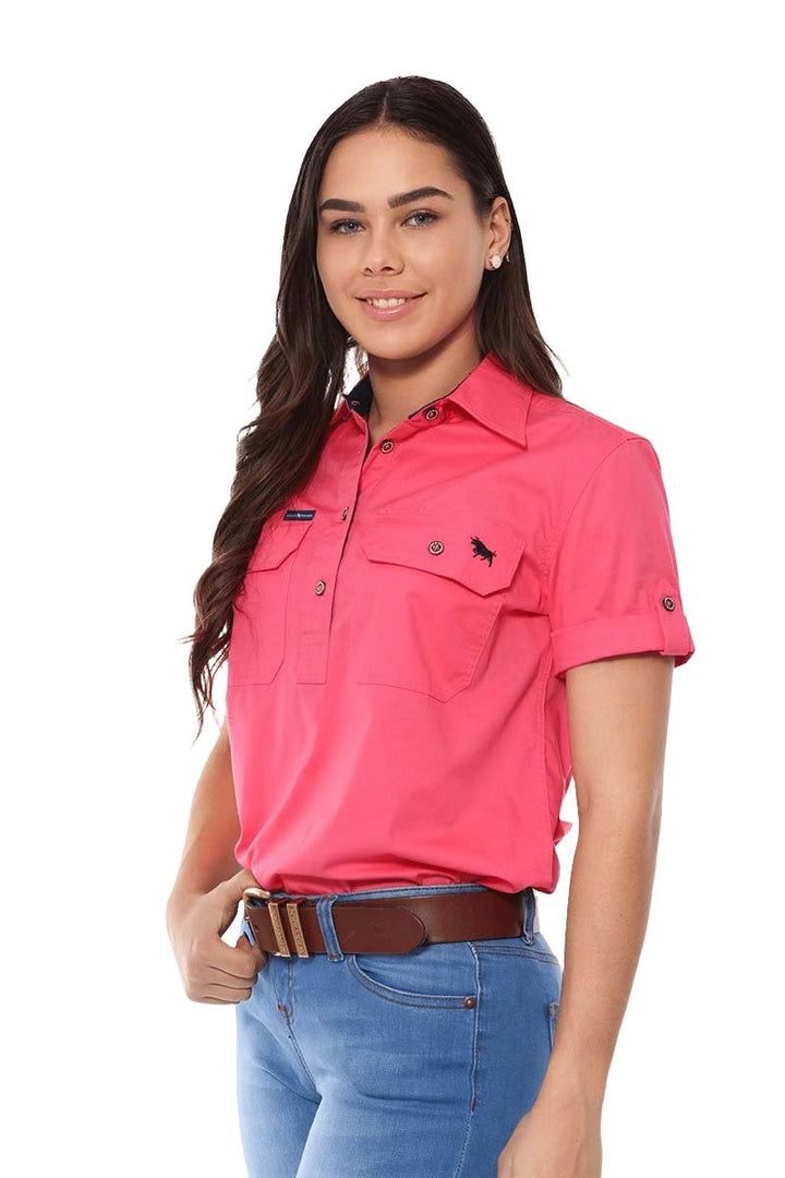 The Jules Half Button work shirt is a relaxed loose fit shirt made from super soft lightweight cotton. Featuring double breast pockets, soft feel cotton, and short sleeve roll tabs, this stylish and comfy work shirt is made to last whatever the conditions.