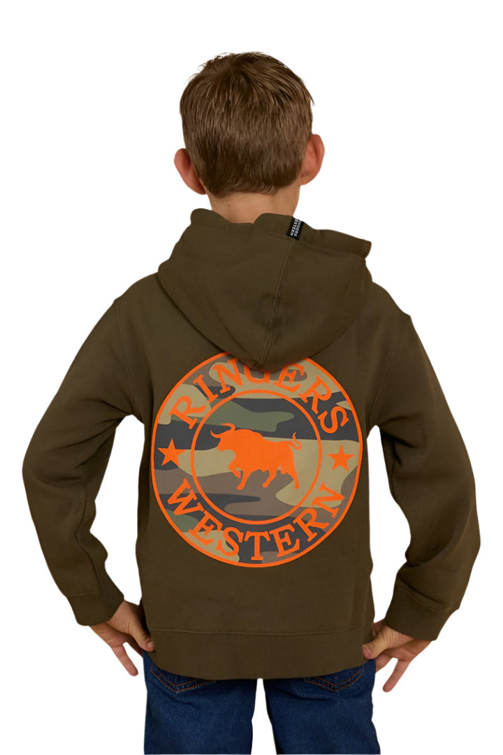 Ringers Western - Kids - Signature Bull Hoodie ~ MilitaryGrn/Camo