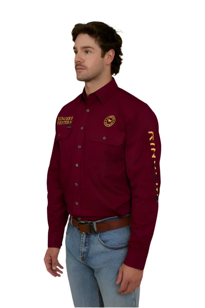Ringers Western - Mens - Hawkeye Full Button Flag Shirt - Burgndy