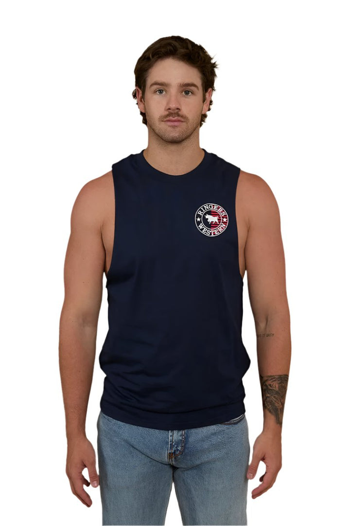 Ringers Western - Mens - Signature Bull Muscle Flag Tank - Navy