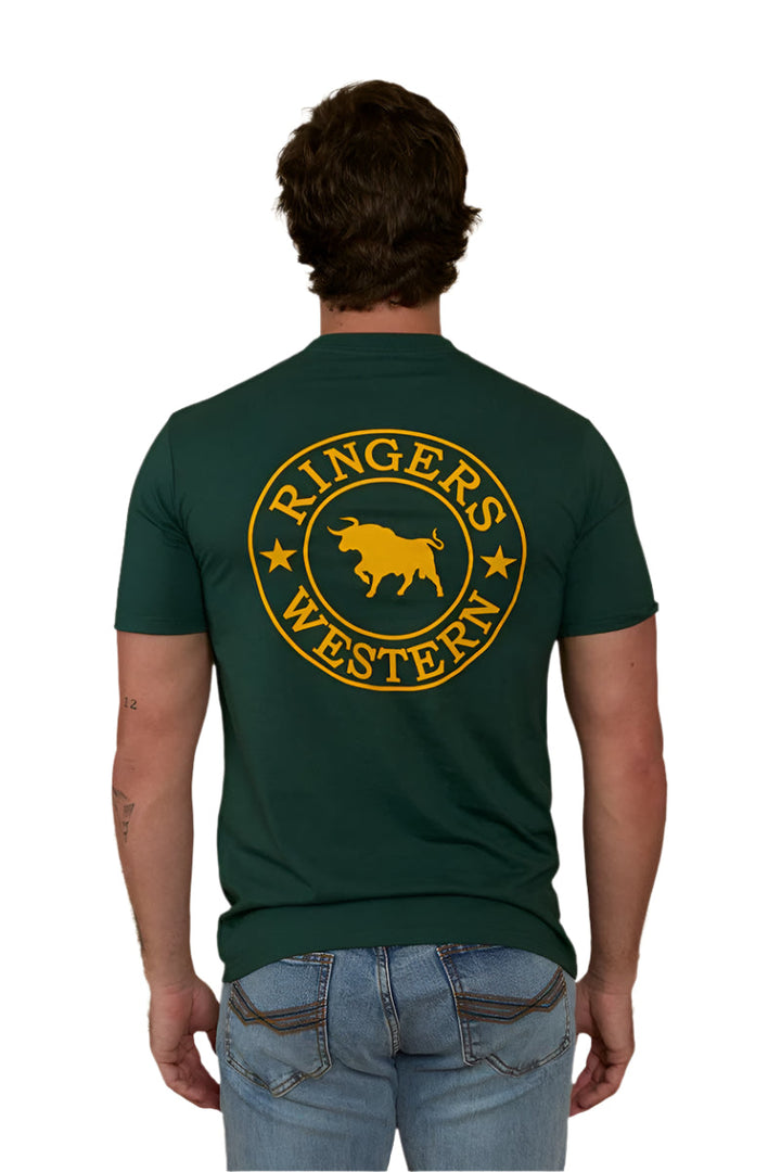 Ringers Western - Signature Bull Classic Tee - Pine/Yellow