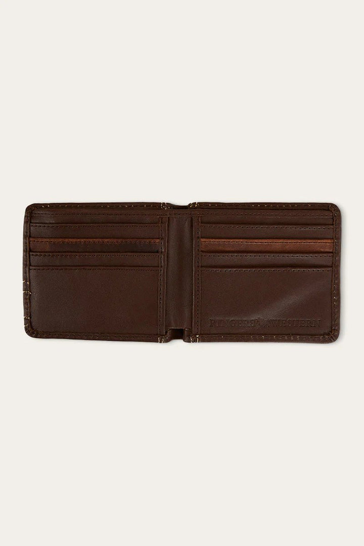 The Indiana Wallet is made from 100% genuine leather and has a polyester internal lining. The combination of both these materials together ensures longevity with every use. The Indiana features multiple internal card slots, along with two note sections and slip pockets. Each wallet features an inlay design and is subtly branded with our Ringers Western logo.