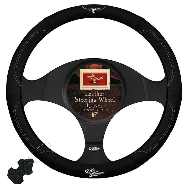 R.M Williams is known for their quality leather boots. Now you can get a R.M Williams steering wheel cover made from the same high-quality leather. While looking good the cover also protects your steering wheel upholstery from wear and tear.