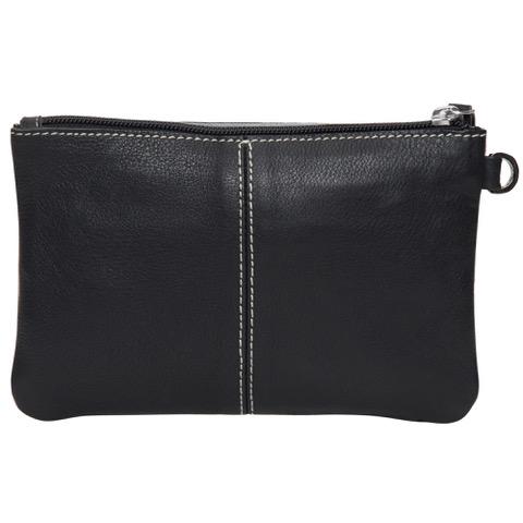 This must have zippered cowhide purse with intricate hand tooled details on the front panel adds touch of glamour and style to your everyday life. It can be used as a large coin pouch, a make-up cowhide purse or as a last minute cowhide clutch for a night out on the town.
