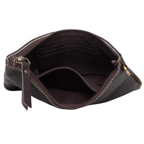 This must have zippered cowhide purse with intricate hand tooled details on the front panel adds touch of glamour and style to your everyday life. It can be used as a large coin pouch, a make-up cowhide purse or as a last minute cowhide clutch for a night out on the town.