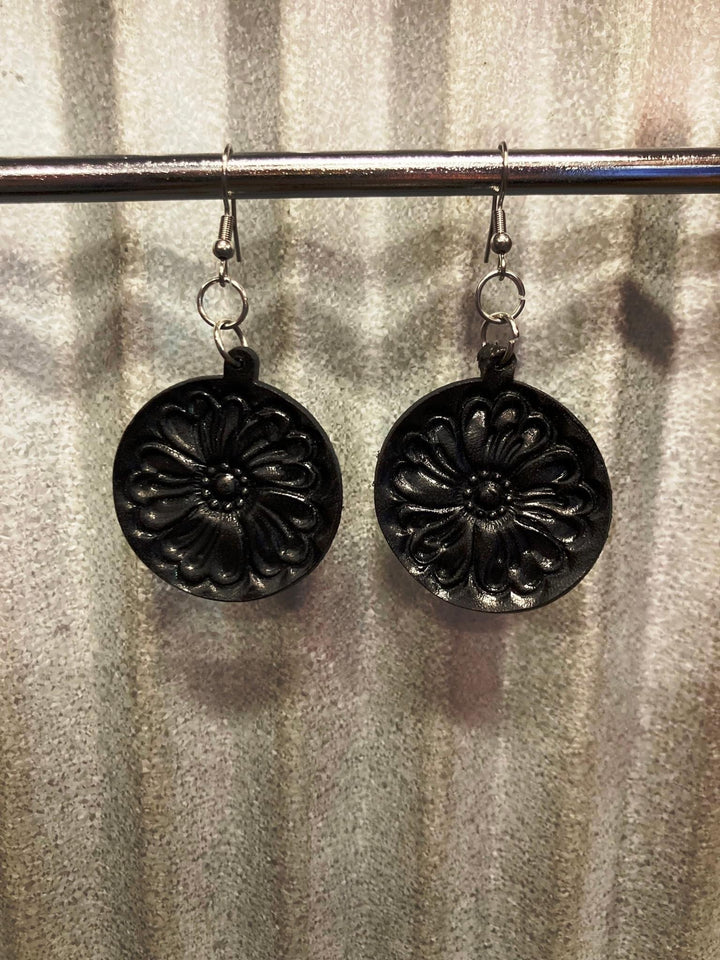 The Design Edge - TooledLeather Round Drop Earrings -Black