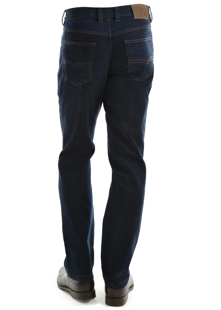 Features: New 5 pocket comfort waist jean style with added wool, dark wash with contrast top stitching, twin back belt loops, rust proof metal accessories, YKK zipper, double stitched for strength, stretch for comfort